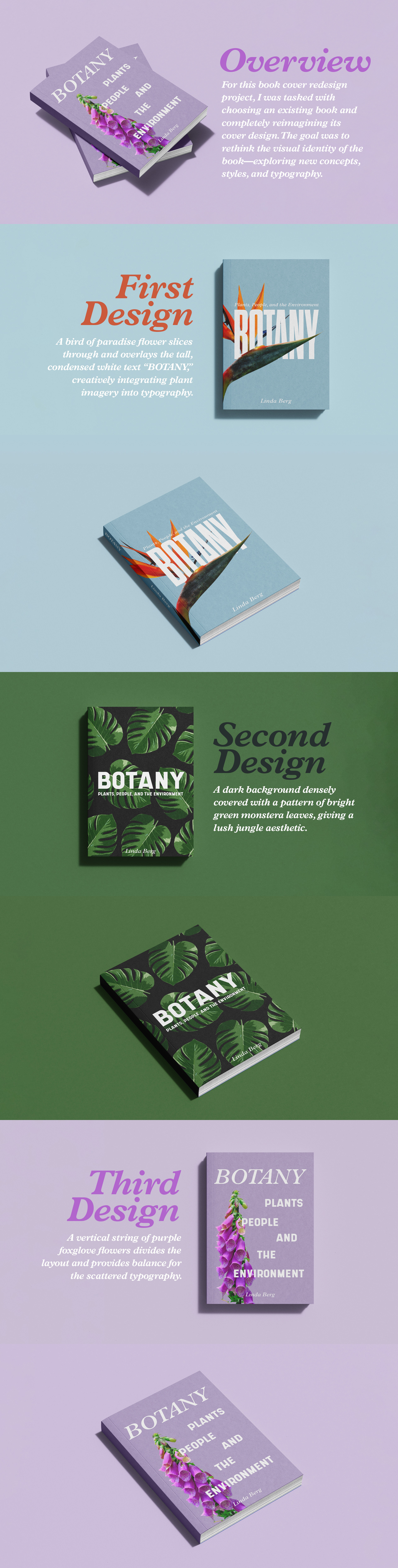 For this book cover redesign project, I focused on the concept of nature and growth—reinventing the visuals of a botany book to create modern, engaging covers that reflect the beauty of plant life and scientific study.
