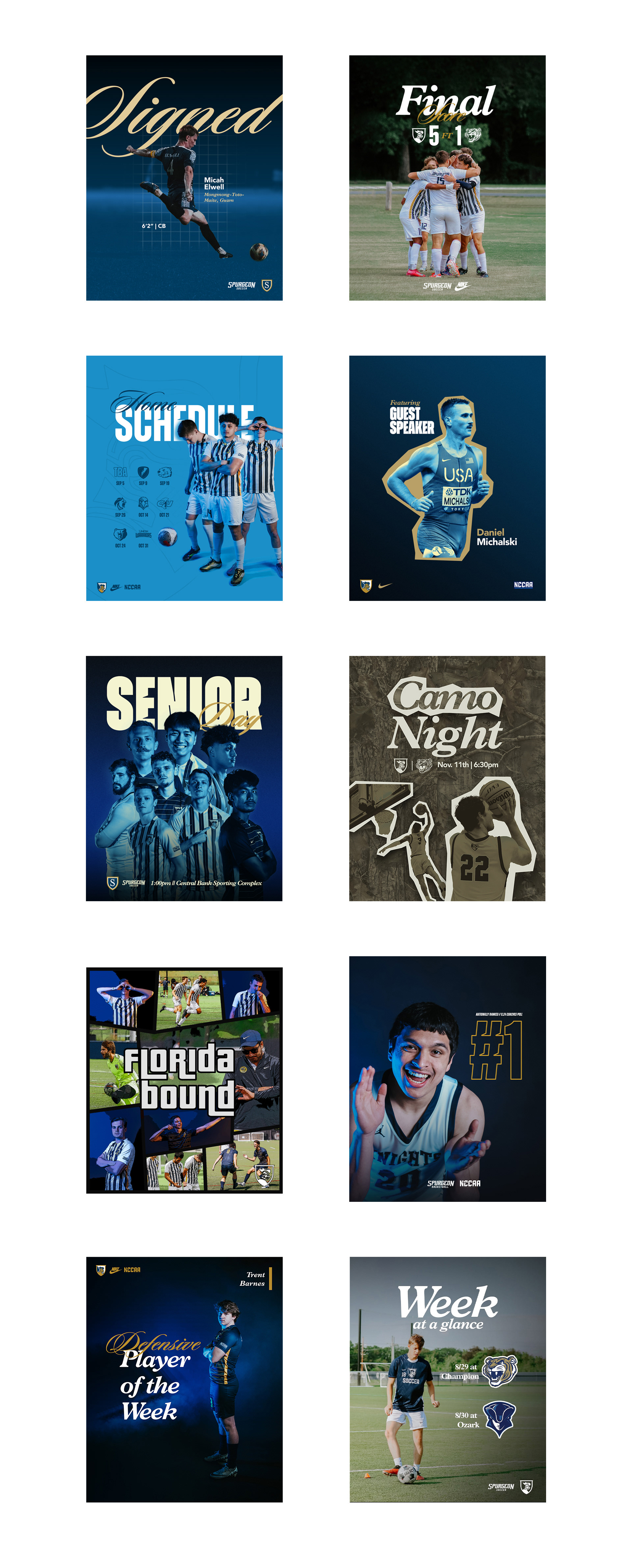 As a Creative Producer for Spurgeon College Athletics, I have helped to lead creative direction, implemented cohesive branding, and designed graphics for use across a variety of platforms and mediums.